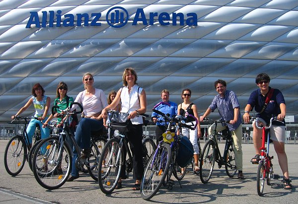 | Werbung für die Allianz durfte es während der WM nicht geben, deswegen musste der Schriftzug Allianz-Arena abmontiert werden. Beim radeln habe ich den Schriftzug dann entdeckt: Am Haus der Kunst am Englischen Garten. Hier sah man erst, wie groß der Schriftzug ist. Am Stadion selber wirkt er dagegen richtig klein.