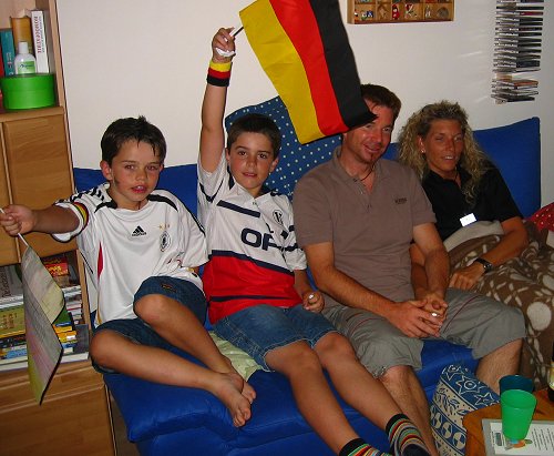 Nach der tragischen Niederlage gegen die Italiener blieb uns nur das kleine Finale Es wurde aber ein großer Abend. 3:1 gegen Portugal und eine Super-Stimmung, die sogar "Nicht-Fußball-Fans" bis spät in die Nacht vor dem TV sitzen bleiben ließ. Bei uns zu Besuch. Kerstin und Bernd (zwei begeisterte "Nicht-Fußball-Fans")