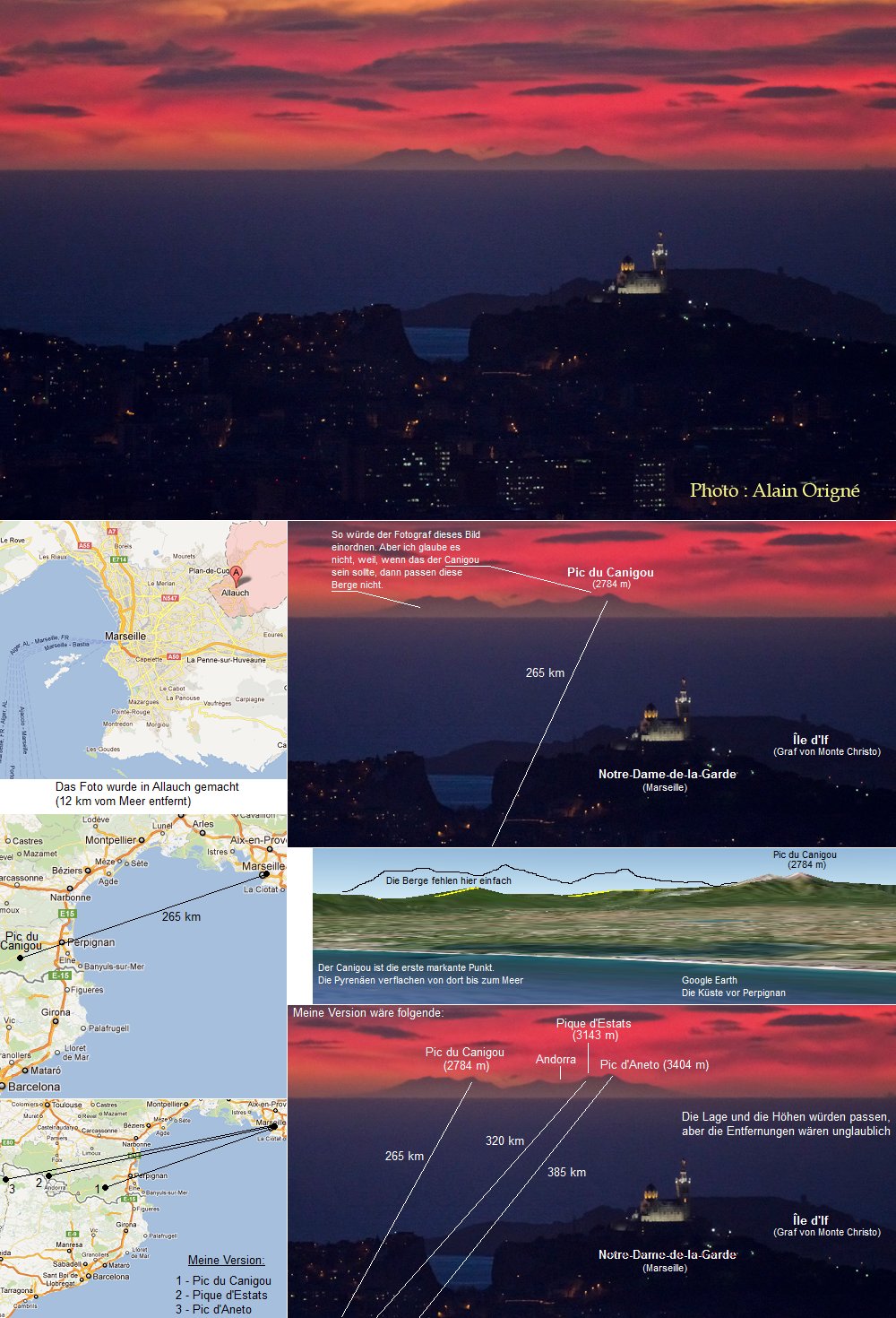 Foto gezeigt. Die Pyrenäen von Marseille aus gesehen, Luftlinie: