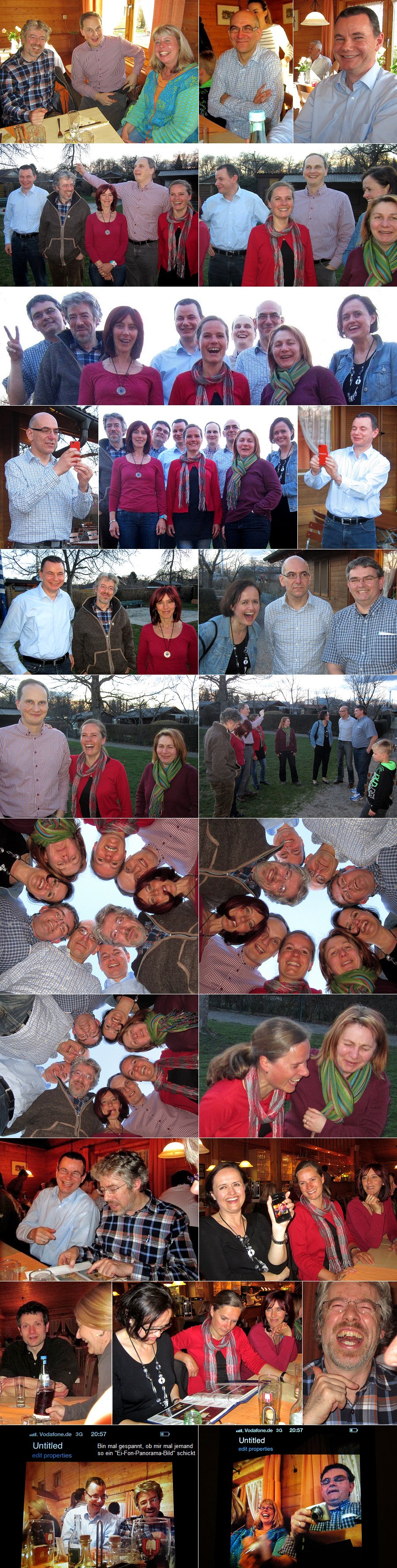 Die Theatergruppe Harlekin. Wir sehen uns gelegentlich zu verschiedenen Anlässen oder rein zufällig. Alle sind nach wie vor Beste Freunde, auch wenn man sich zwischen Holzkirchen, München, Augsburg und Zürich leider nicht regelmäßig sieht. Aber nach 9 Jahren haben wir uns endlich mal wieder alle getroffen. Was haben wir getan? Eigentlich haben wir nur gelacht, weil uns aus unseren Theater-Erinnerungen so wahnsinnig viele lustige Dinge eingefallen sind. ... und am Ende begannen wir doch ernsthaft zu überlegen, ob wir mal wieder ein Stück einstudieren sollten. ... Was meint Ihr? |