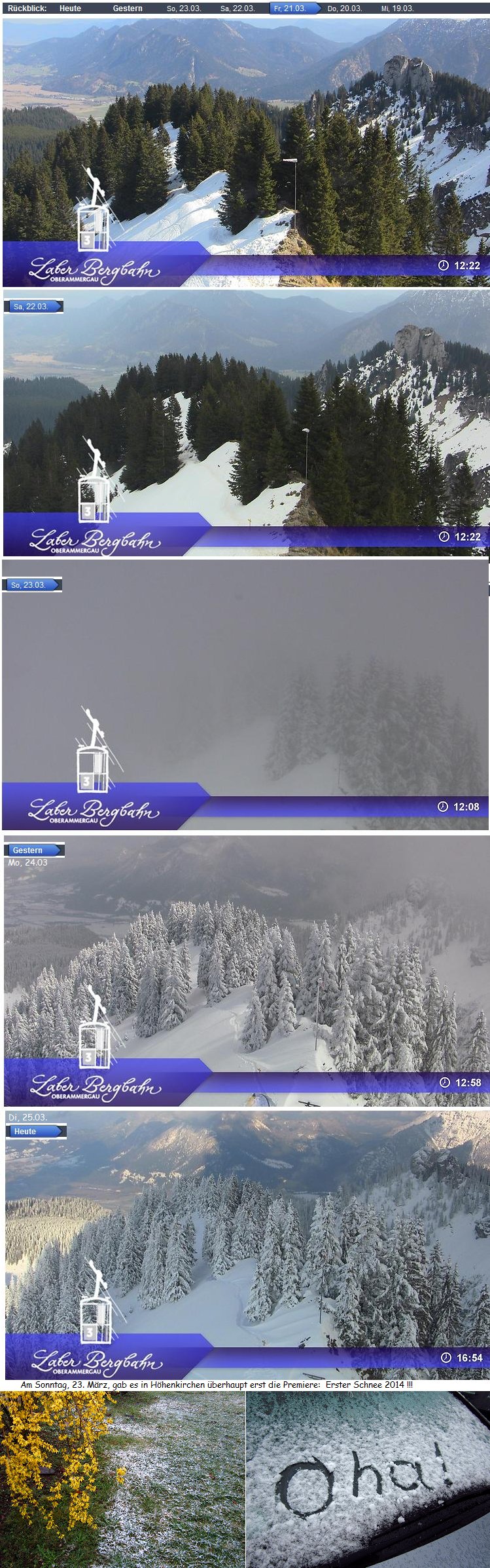 2014 war bisher relativ schneearm. Erst an dem Wochenende, wo Ingrid und Jörg kamen, kam auch der Winter. Bilder der Laber Webcam (Oberammergau). Hier geht's zum Livebild ...>>
