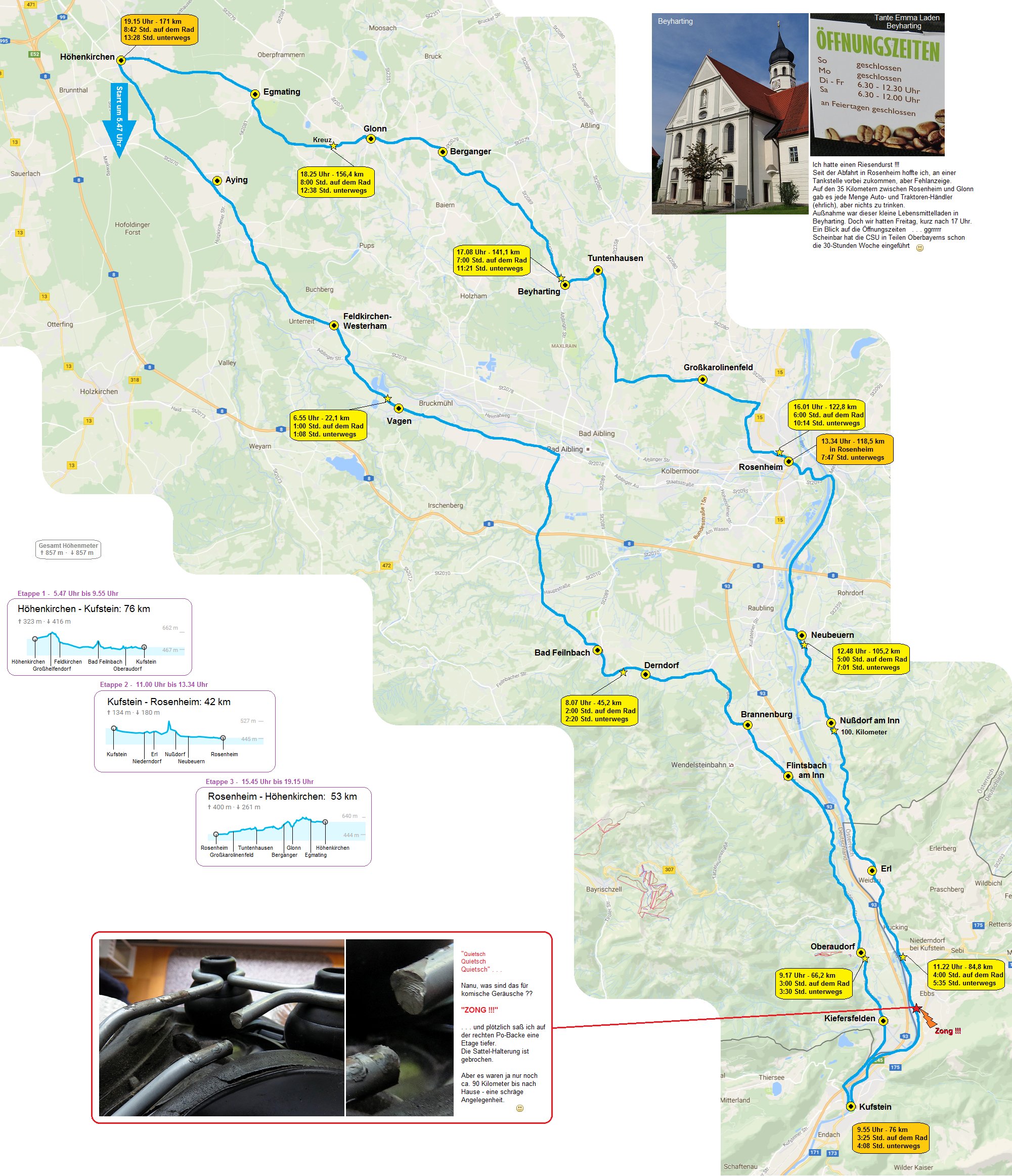 Ab Höhenkirchen geht es nach Süden. Wer sich durch diese Strecke scrollt, erfährt noch etwas über einen kaputten Sattel und Tante Emma im Feierabend.