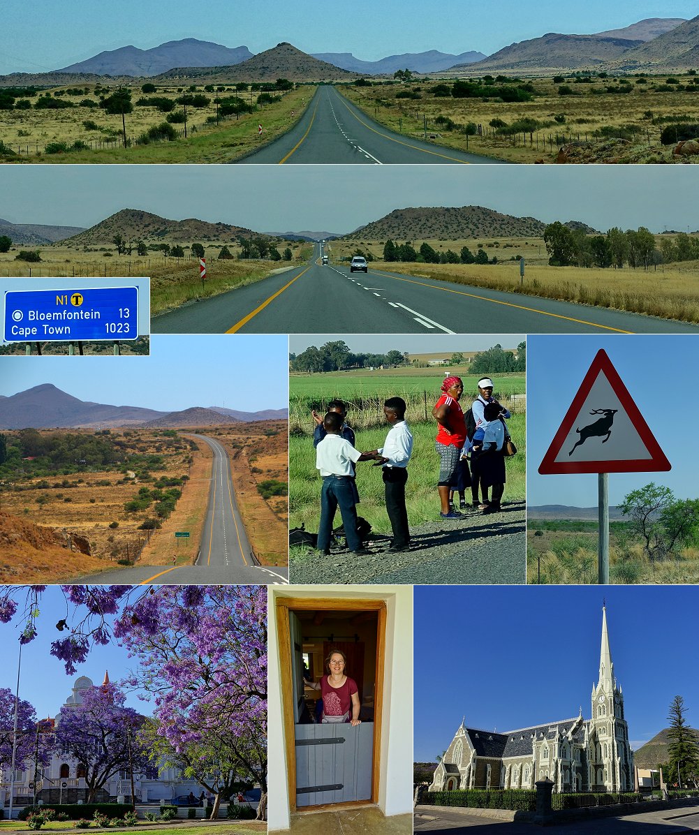 Unser Tag: Quer durchs Land (angenehme Fahrt), Tanken in Bloemfontein,
