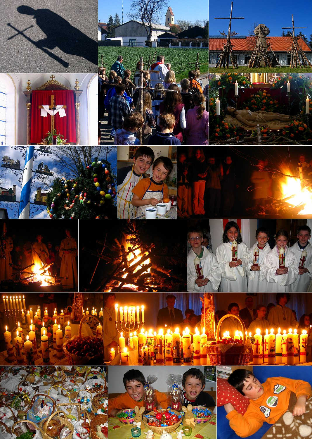 als Osterfeuer verbrannt. ![]() 45 Kommunionkinder präsentierten in der Osternacht erstmals ihre Alben und Kommunionkerzen. Doch das frühe Aufstehen (4 Uhr) ist nicht jedermanns Sache. Gegen 8 Uhr schlief die halbe Familie wieder. Anderen wird es wohl ähnlich ergangen sein. |