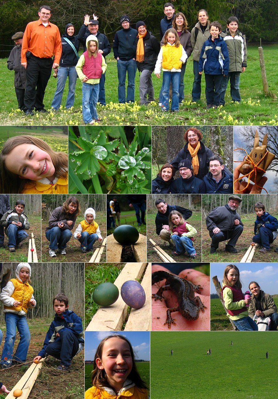 Linden und Lochen) gelaufen, haben Eier gefunden und Oarscheibn gespielt.