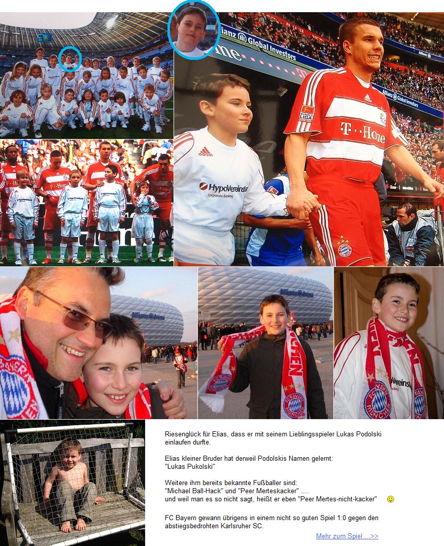 Ein Traum wird wahr Welches Kind (und auch Erwachsener) träumt nicht davon, mal als Eskorte mit den Fußballstars in ein ausverkauftes Stadion einzulaufen. Elias hatte dieses Glück.