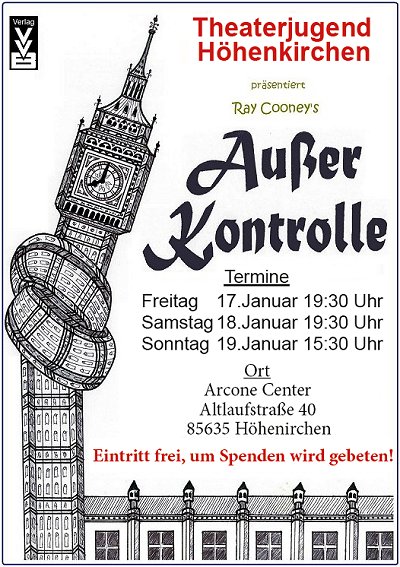 "Außer Kontrolle" – von Ray Cooney "Staatsminister bei Sexorgie mit Sekretärin und Leiche erwischt!", diese Schlagzeile taucht immer wieder vor Richard Willys innerem Auge auf. Schließlich wäre es verheerend für die Regierung und nicht zuletzt die eigene politische Kariere, wenn herauskäme, dass er sich mit der hübschen Jane, Sekretärin des Vorsitzenden der Opposition, für mehr als nur ein paar Diktate und Stenographie in einer Hotelsuite trifft. Das Übel beginnt