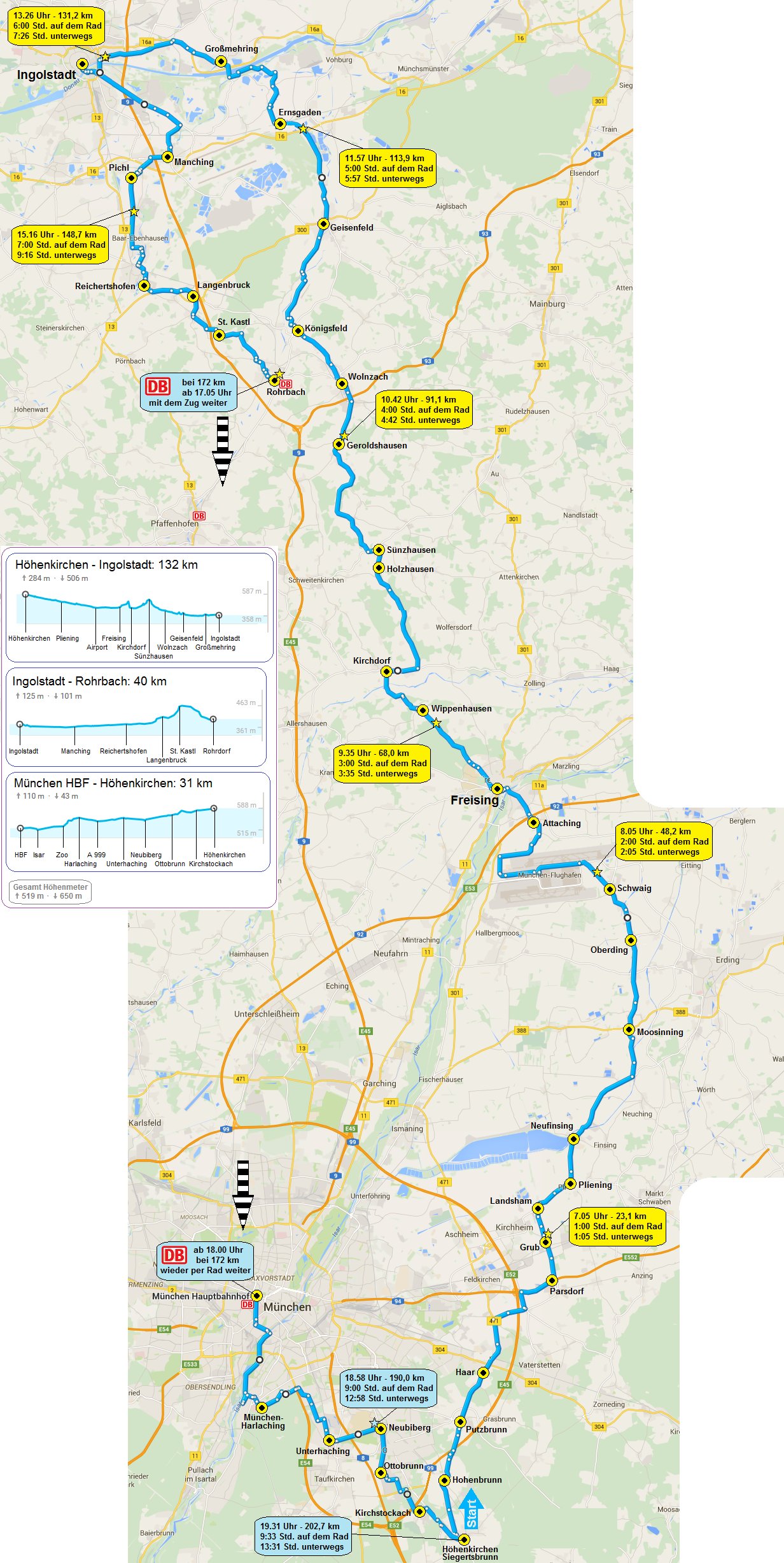 Hier kommt die grafische Aufarbeitung der Radtour nach Wasserburg am Inn. Los geht es in Höhenkirchen, daher müsst Ihr die Karte von unten aus anschauen.