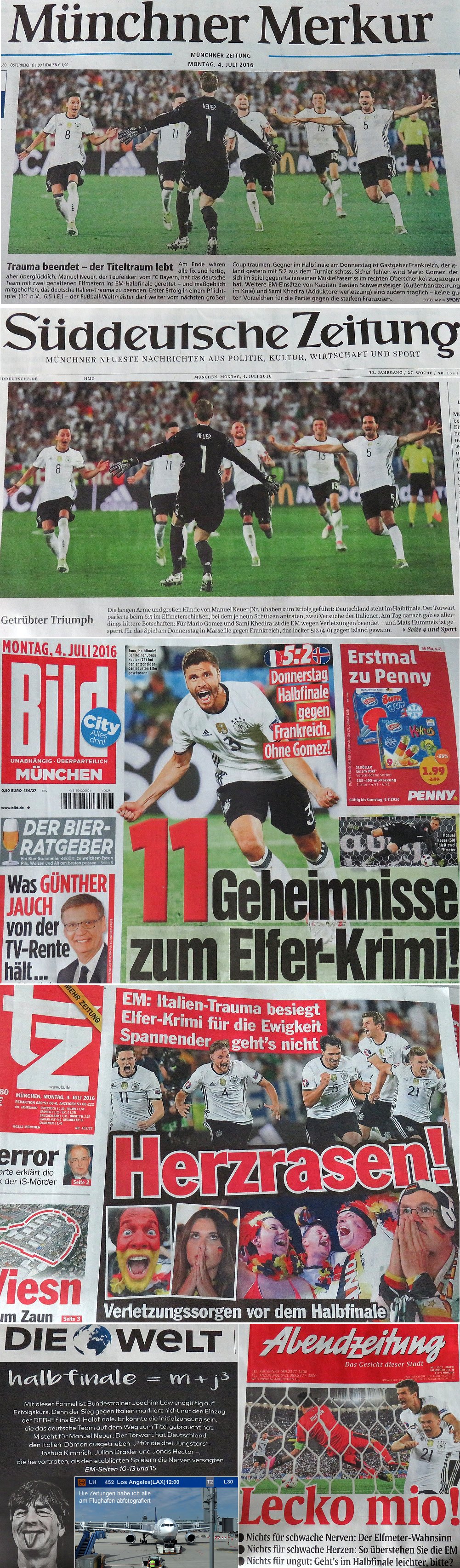 Viertelfinale Deutschland - Italien. Blick in die Presse, am Tag danach