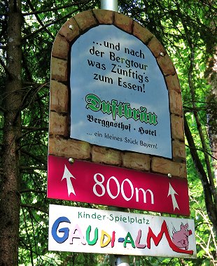 800 Meter hinter dem Parkplatz befindet sich der Gasthof