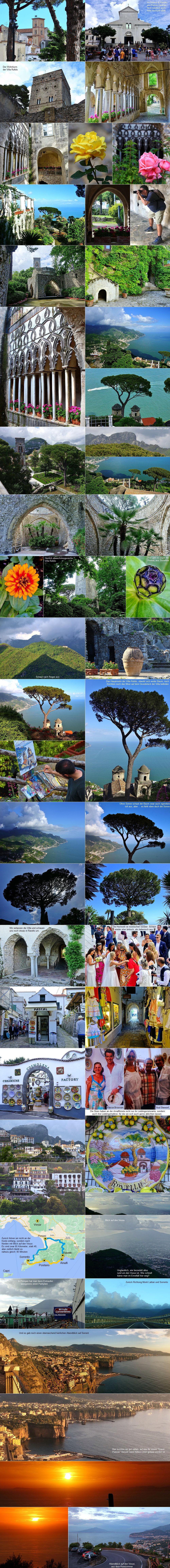 Wir besuchten die Villa Rufolo, die bereits im 13. Jahrhundert von der wohlhabenden römischen Familie Rufolo erbaut worden ist. Durch die Jahrhunderte wechselten die Besitzer laufend und erst ein schottischer Industrieller machte daraus einen "Erholungsort" für Gäste. Unter anderen waren die Musiker Edvard Grieg und Giuseppe Verdi zu Gast und ein gewisser Richard Wagner aus Bayreuth fand 1880 hier die Inspiration für "Klingsors Zaubergarten", welches anschließend zum Bühnenbild des 2. Aktes seiner Oper Parsifal wurde.