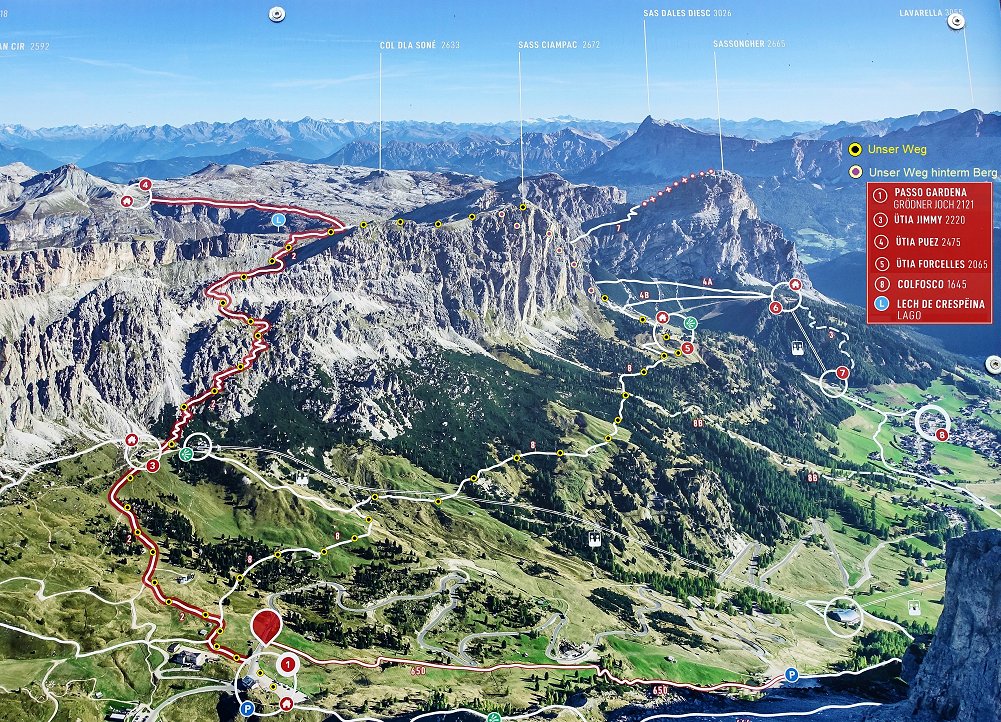 ca. 950 m, bis zum Sas Ciampac nur 600 Hm