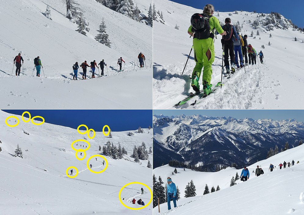Skitour auf die andere. Auch die Menschen-Mengen der Gruppen passen