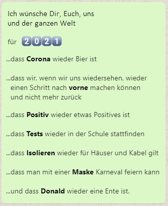 Zum Abschluss noch der schönste Neujahrwunsch, den ich Silvester per WhatsApp erhalten habe.