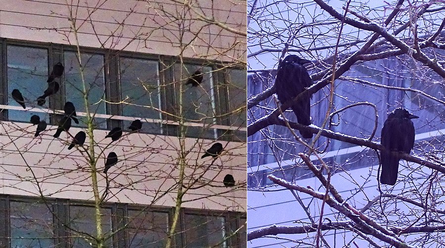 Heute blieben zwei Raben einfach dort sitzen, gerade, als ob sie sich