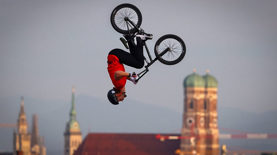 Rechts unten sieht man den Schatten eines grüßenden Radfahrers.