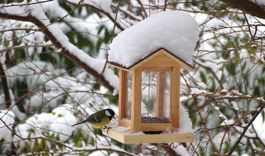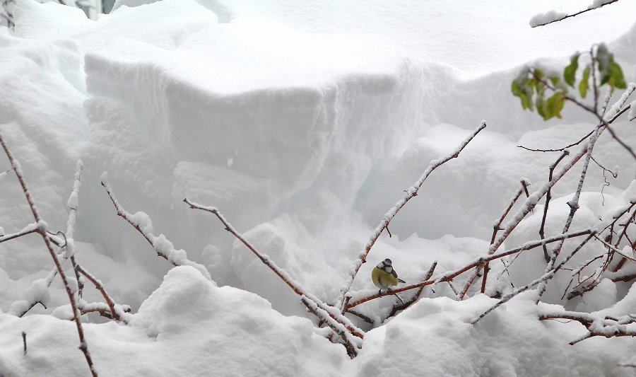 Die kleine Blaumeise findet es jedoch bissl unheimlich, wie es scheint.