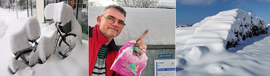 habe unsere Pergola mit dem Besen ein wenig von den Schneemassen befreit,
