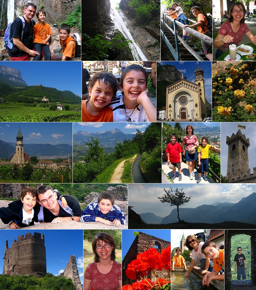 Bilder verschiedener Ausflüge und Wanderungen (Spaziergänge): Rastenbachklamm, Biergarten Forst, Burgruine Boymont, Mezzocorona, St. Pauls, Marlinger Waalweg, Trento, Castelfeder, Ruine Leuchtenburg und Altenburg