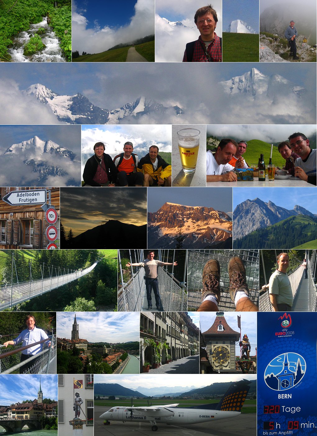 den Thuner See. Naja, beim nächsten mal vielleicht. ![]() Am Montag spazierten wir erst über eine Hängebrücke bei Frutigen, bevor die Jungs mich dann in Bern raus ließen. Hier hatte ich noch fast sieben Stunden Zeit bis zum Rückflug und marschierte kilometerweit durch die schöne schweizer Hauptstadt, lief anschließend noch zum Flugplatz weiter. |