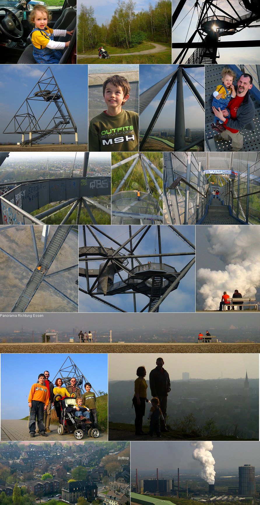 hinaufklettern. Von hier hat man einen guten Überblick über Bottrop, Gladbeck, Schalke, Gelsenkirchen, Essen, Mühlheim, Oberhausen und bei klarer Sicht noch weiteren Städten. Aber ein bissl schwindelfrei sollte man schon sein, auf dem wackeligen Gebilde. ![]() |