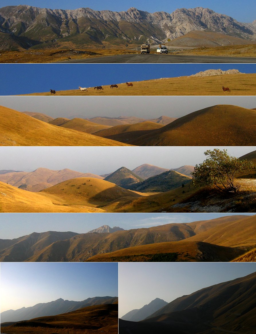 Herrliche Abendstimmung Am Ende des Tages ging es hinab in eine Pizzeria nach Assergi. Doch die Fahrt im Abendlicht war so märchenhaft schön, dass ich wünschte, die Zeit wäre stehen geblieben, das Licht wäre unverändert geblieben und die Autofahrt würde immer noch andauern. (Aber die Pizza war auch ganz lecker!)
