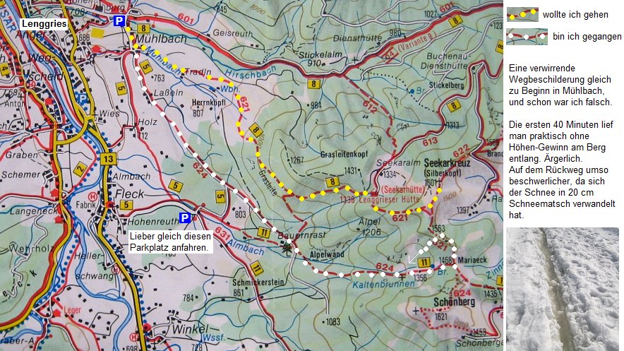 (1468 m) an. Über 3 Stunden!!! In einigen Bereichen war der Schnee
