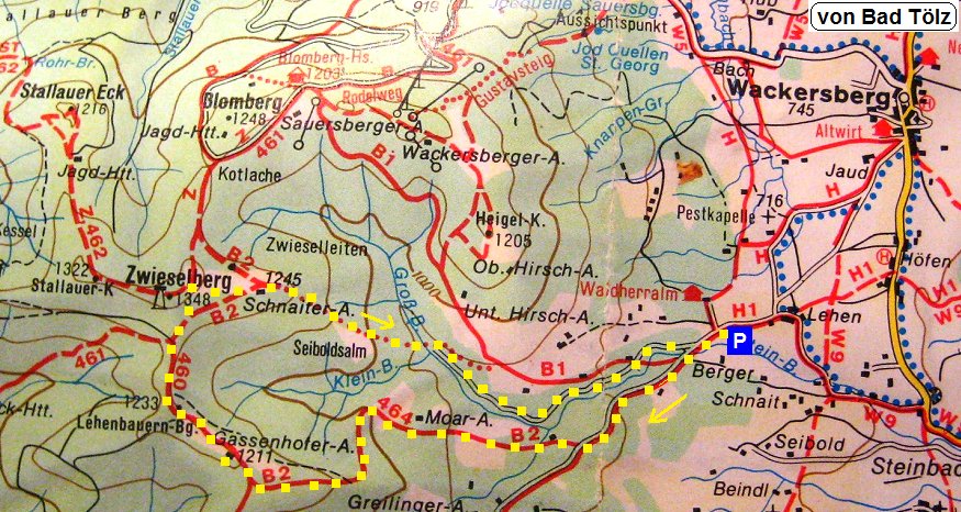 vorbei (Richtung Kochel), doch ein letzter Abzweig weist den Weg nach